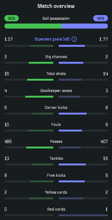 The opening minutes were balanced, but with a slight edge for United. They created more, progressed with better structure, and gave the feeling that a goal could come early. Still, there was always something missing: the final decision, the clean finish.